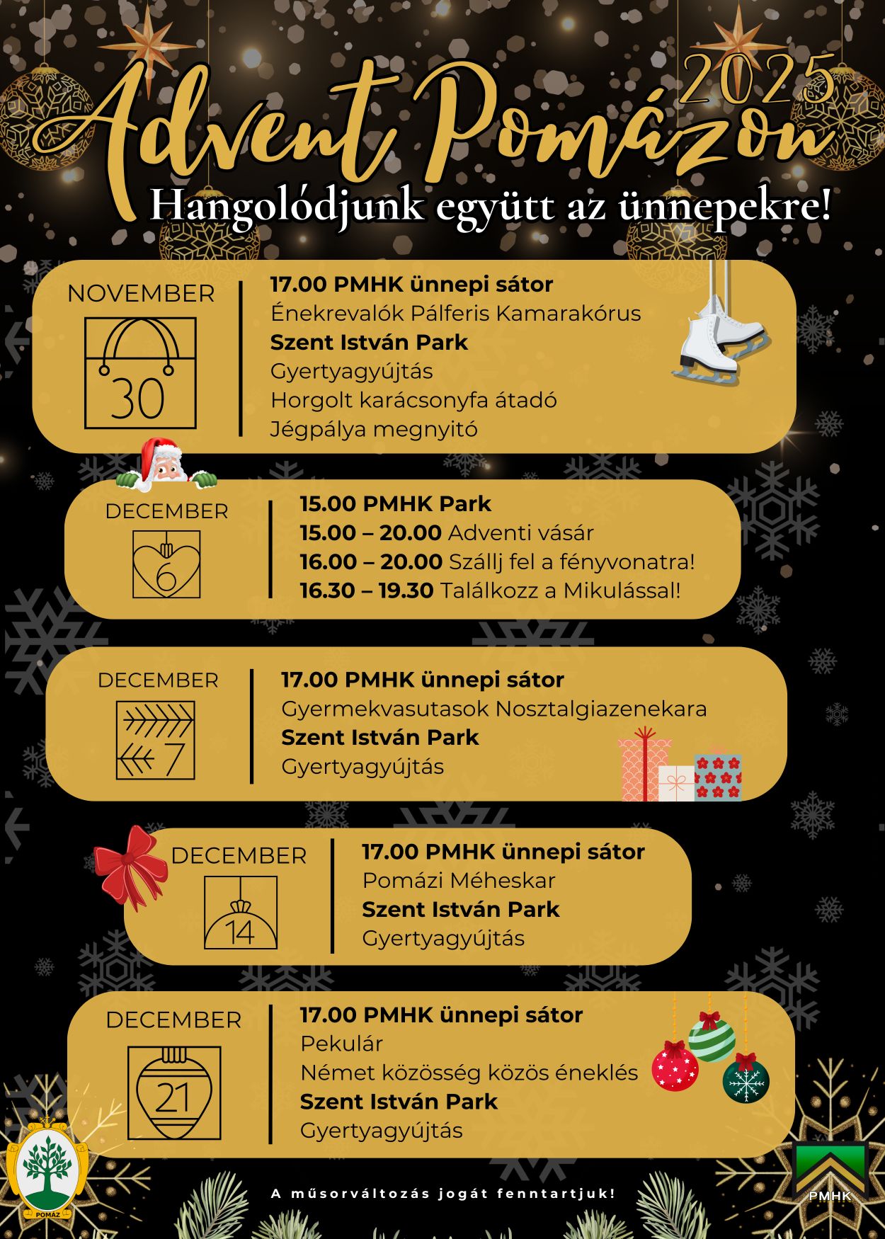 Adventi és Mikulás programok a PMHK ünnepi sátrában, parkjában és a Szent István Parkban