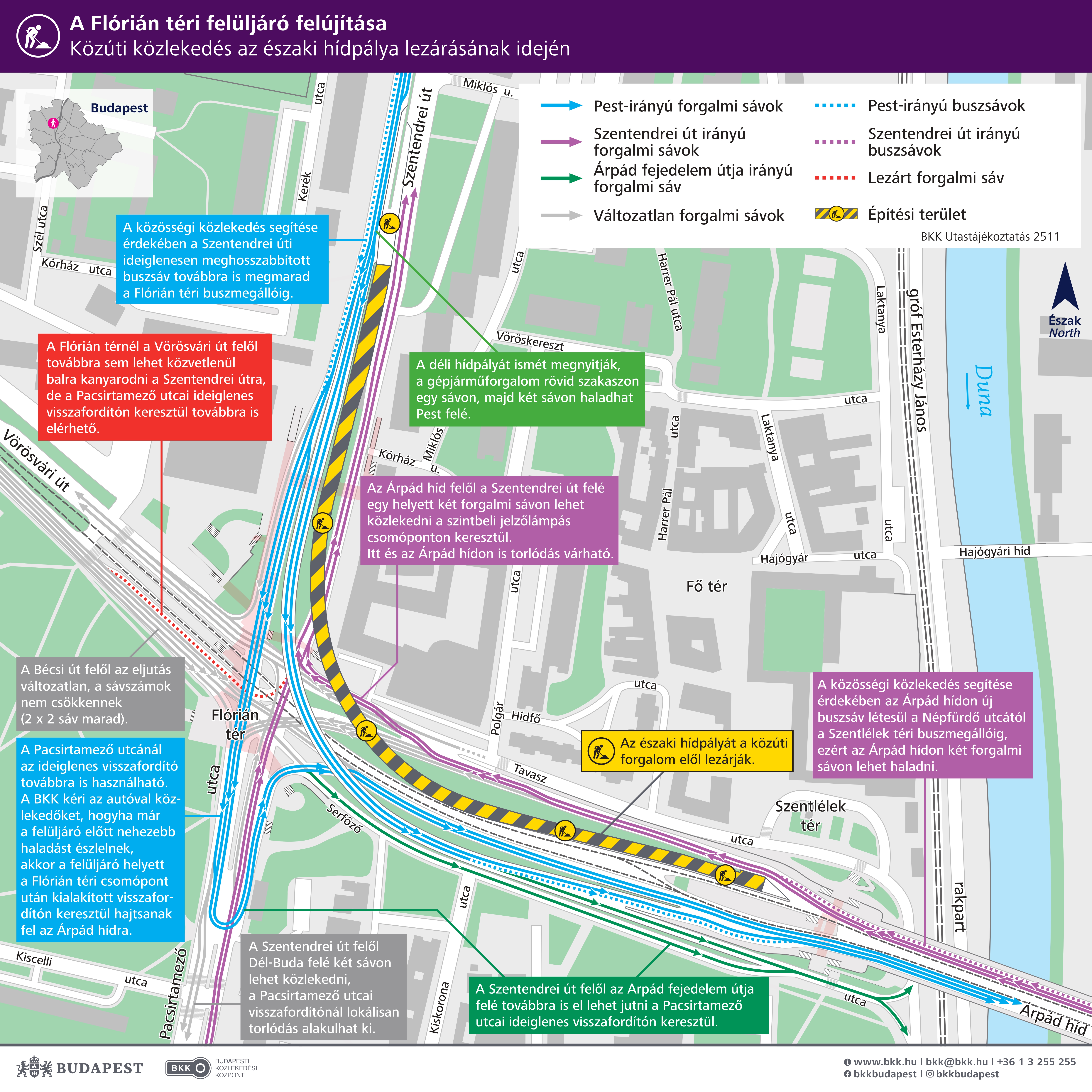 Az Árpád híd és a Flórián téri csomópont áteresztőképessége az Árpád híd felől Buda, illetve Észak-Buda felé lényegesen kisebb lesz, mint a felújítás első ütemében. Ezért a BKK kéri az arra közlekedőket és az agglomerációból érkezőket (vagy oda tartókat), hogy – lehetőségük szerint – a közösségi közlekedést, azon belül is elsősorban a nagykapacitású kötöttpályás járatokat vegyék igénybe, ezzel csökkentve a Flórián tér és környékének forgalmi terhelését. Emellett azt tanácsolja a személy- és az egyéb gépjárművel közlekedőknek, hogy Pest felől az Árpád hidat lehetőleg elkerülve, másik híd használatával közelítsék meg az úti céljukat.